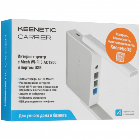 Маршрутизатор Keenetic KN-1721 Carrier оснащен двухдиапазонным Wi-Fi 5 класса AC1200 и портом USB 2.0 для подключения внешних модемов LTE/4G. Одновременно может использовать разные источники интернета — любой из трех портов Ethernet, Wi-Fi в режиме WISP и USB-модемы. Благодаря KeeneticOS доступны сегментация сети, приоритеты подключений. Оптимален как в роли самостоятельного роутера, так и контроллера Mesh Wi-Fi-системы Keenetic. Дополнительные узлы-ретрансляторы можно подключать кабелем как точки доступа и по Wi-Fi как усилители сигнала.